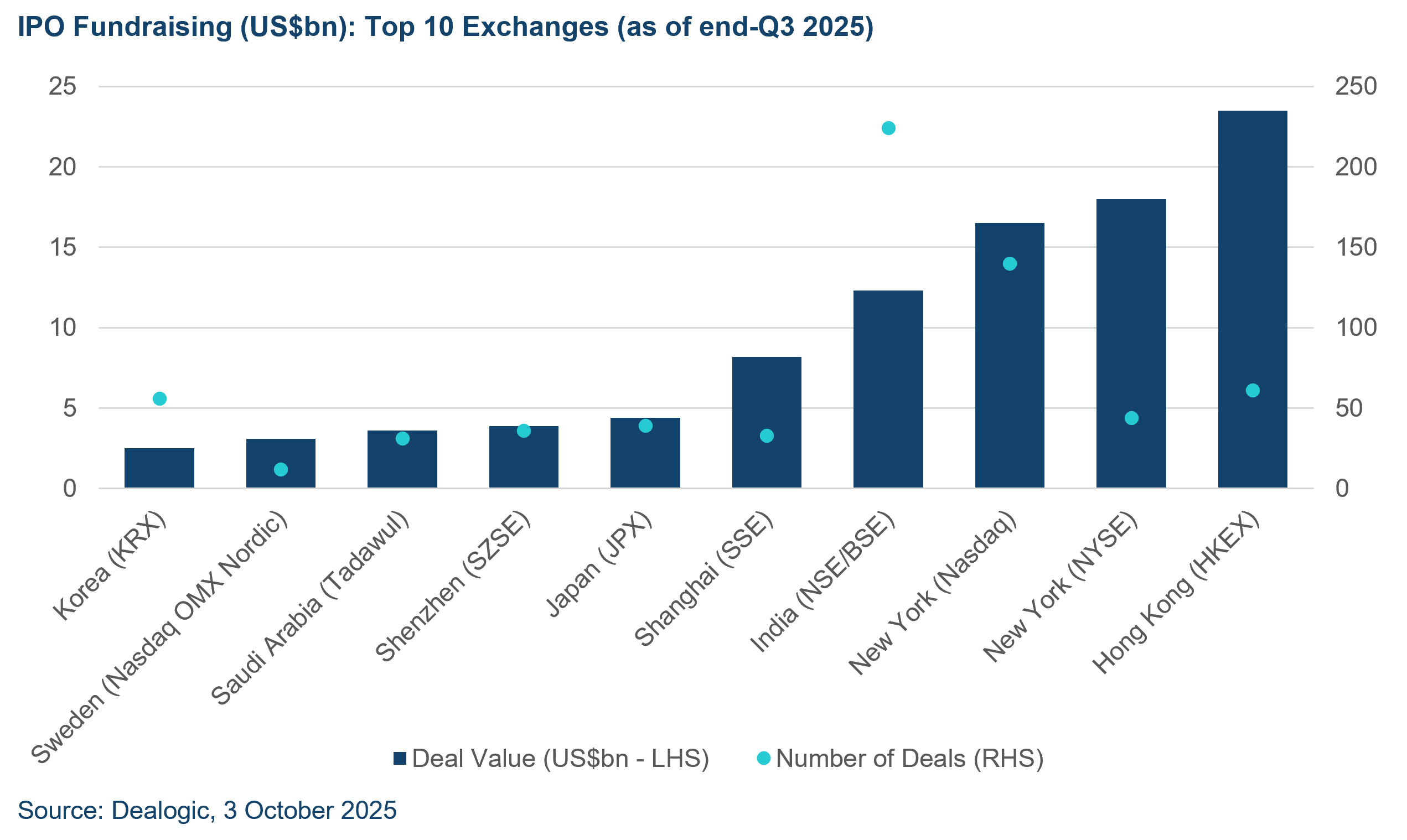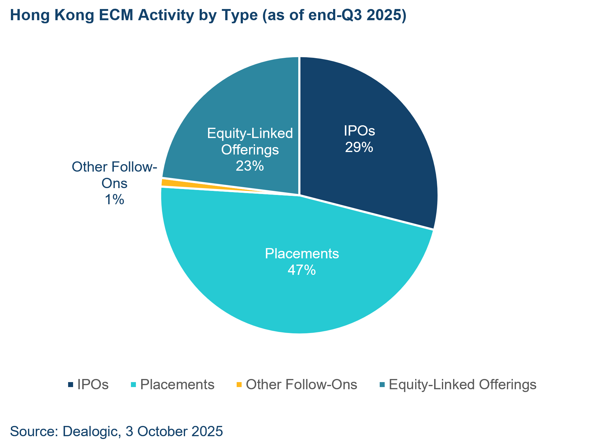 As of 5 October 2025, there are around 300 active A1 filings, with 48 companies under the 18A and 18C regimes, and five listing applications from international companies currently on file. With attractive listing regimes, sector breadth and deep liquidity, Hong Kong is poised to maintain its position as the premier venue for IPOs and global fundraising for the foreseeable future.